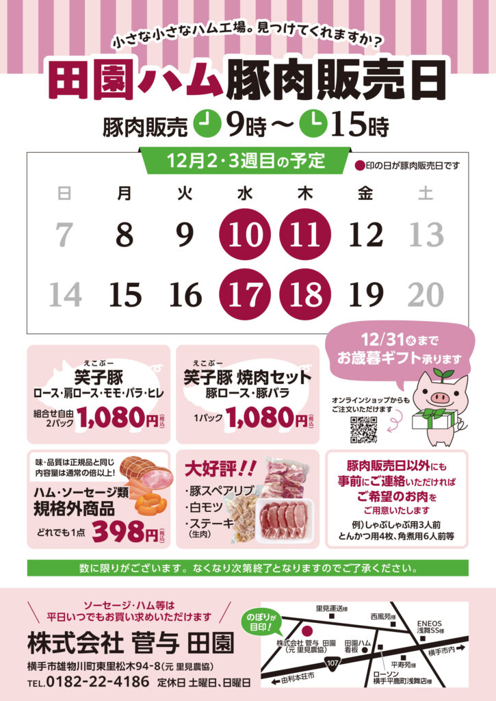 豚肉販売日以外でも事前にご連絡いただければご希望のお肉をご用意いたします。
